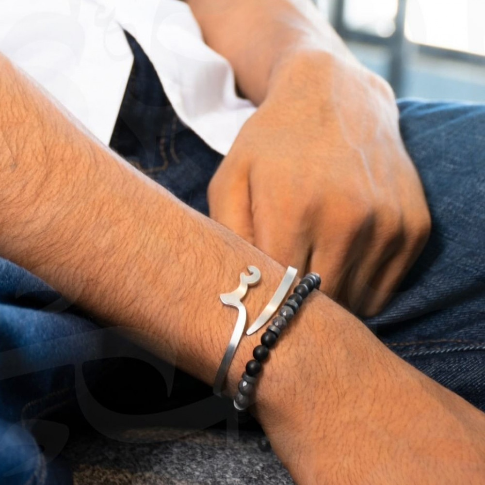 أسورة مستوحاه من جمـال الخـط العـربي بحرفك أو حرف من تحب وممكن تقديمها كهدية مميـزه وفريده من نوعها .التصنيف : رجالي / نسائيتتوفر منها لونين :ذهبي / فضيالاساور مرنه بحيث يمكن تضييقها او توسيعها بحسب قياس اليد