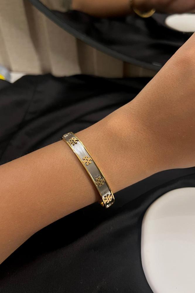 وسوارًا بسلسلة ذهبية رفيعة مع عقدة أنيقة، بالإضافة إلى سوار بتصميم معدني عصري مرصع بلمسات براقة. هذه المجموعة مثالية لإبراز أنوثتك وتنسيقها مع إطلالاتك اليومية أو المسائية، كما تُعد خيارًا رائعًا كهدية فاخرة.
