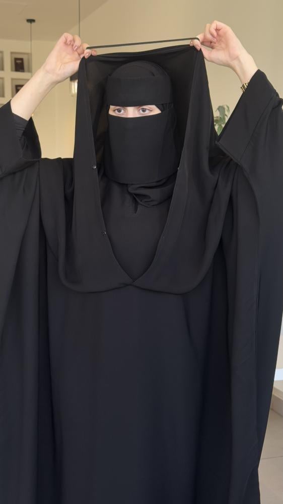 عباية اثنين في واحد تكون عبايه راس وتكون عباية كتفسوادها فاحم ومن افضل الاقمشهبمطاط على الراس لتثبيتهابدون طرحهنوع القماش : انتريتقماش طايحالقصه :نص بشتالقفله : مغلقهلايحتاج كوي