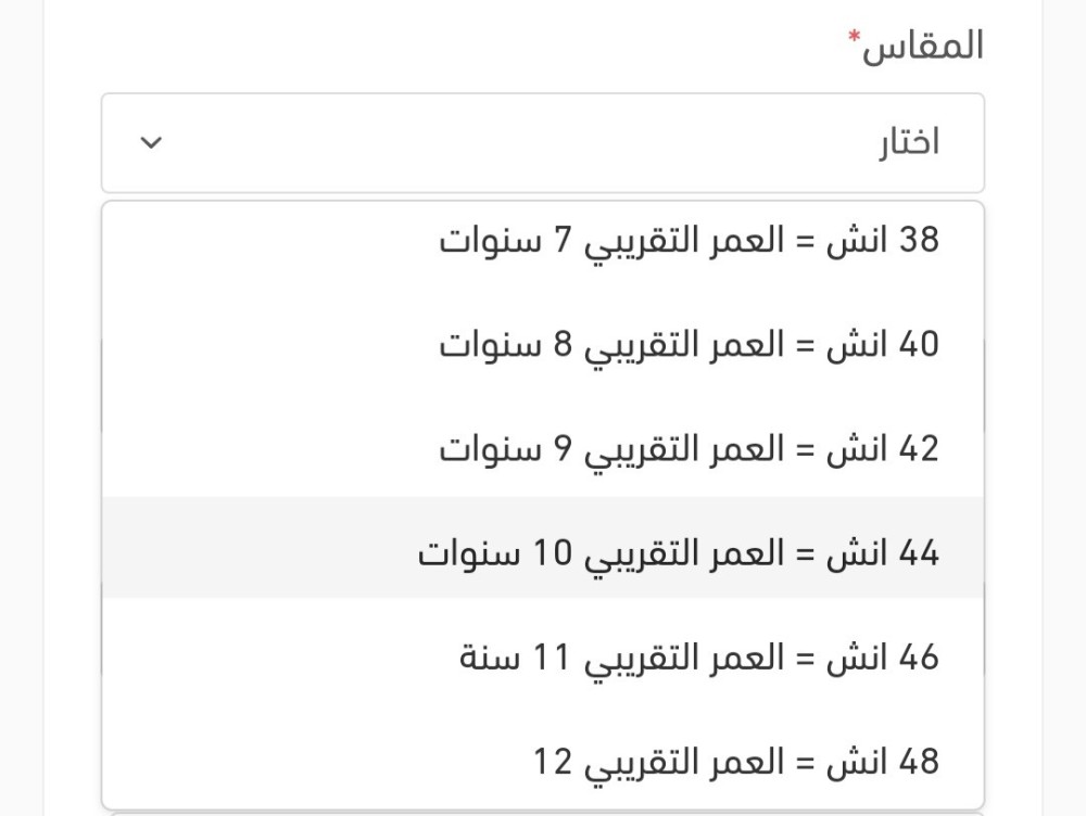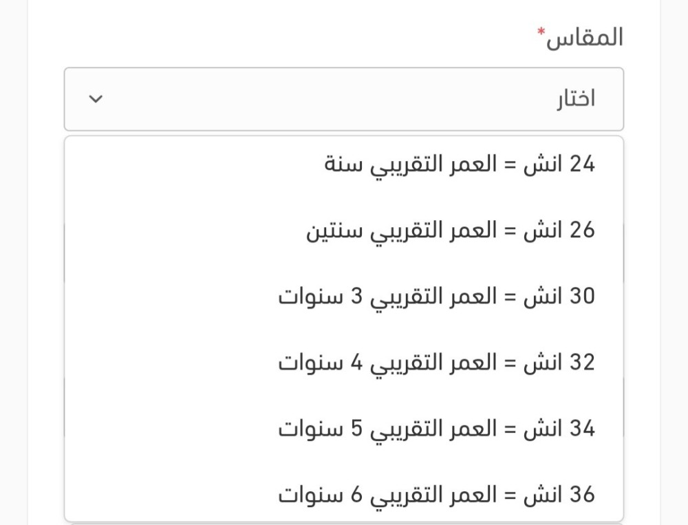 المقاس حسب طول ثوب الطفل والعمر بالانش