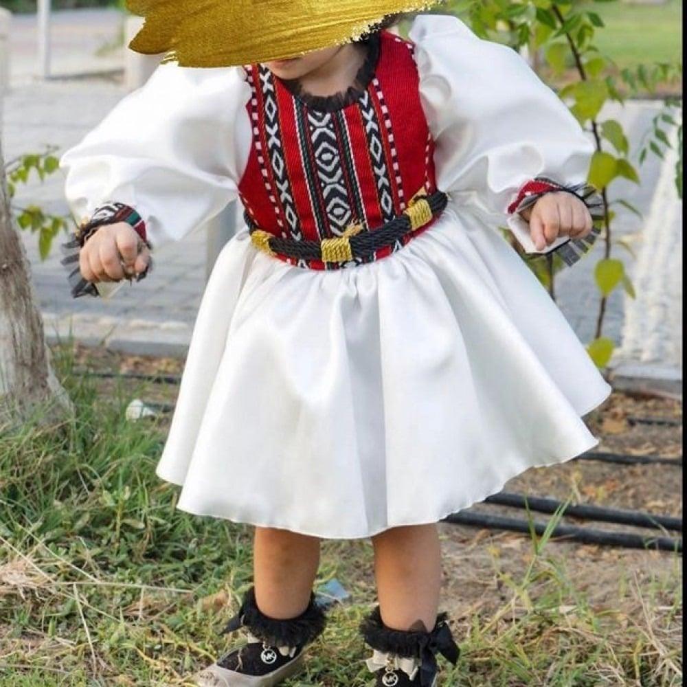 فستان وطني بناتيمطبوع بشعار التاسيسذا المنتج يندرج تحت خيار تجهيز حسب الطلب**موديل الفستان —-ميد لنصف الساقنوع القماش —تفته**القياسات —————من 6شهر- 10سنه**طريقة القياس بالانش ( يرجى الانتباه للقياس بالانش) نصف دوران فقط