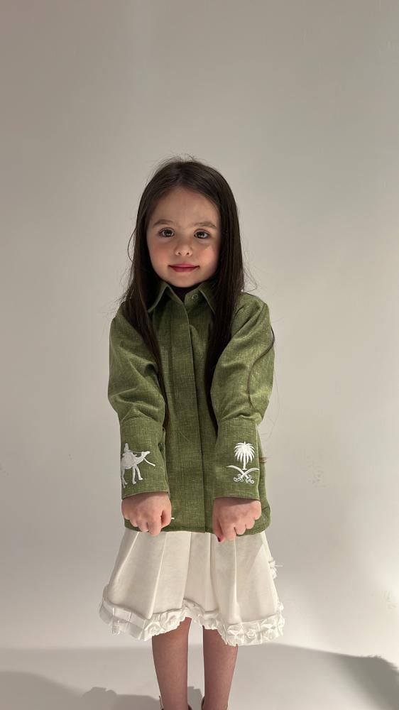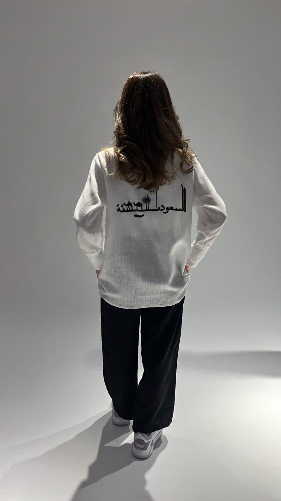 قميص ابيض بقصه كلاسيكيةمصنوع من ألياف الكتان الطبيعيالذي يساعد على مرور الهواء ويعطي ملمس مريح وبارد للجلد ،مزين بقطة قماش أخضر يحمل هوية اليوم الوطنيخامات التصنيع : كتان هندي 100٪نوع طباعه : طباعه عالي الجودة الحديثة.