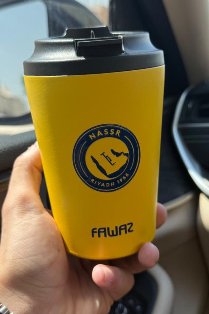 كوب نادي النصرطباعه حسب الطلب.بامكانك كتابه الاسم والعباره.حافظ للحرارة والبرودةالداخل قصدير مقاوم للصدئ